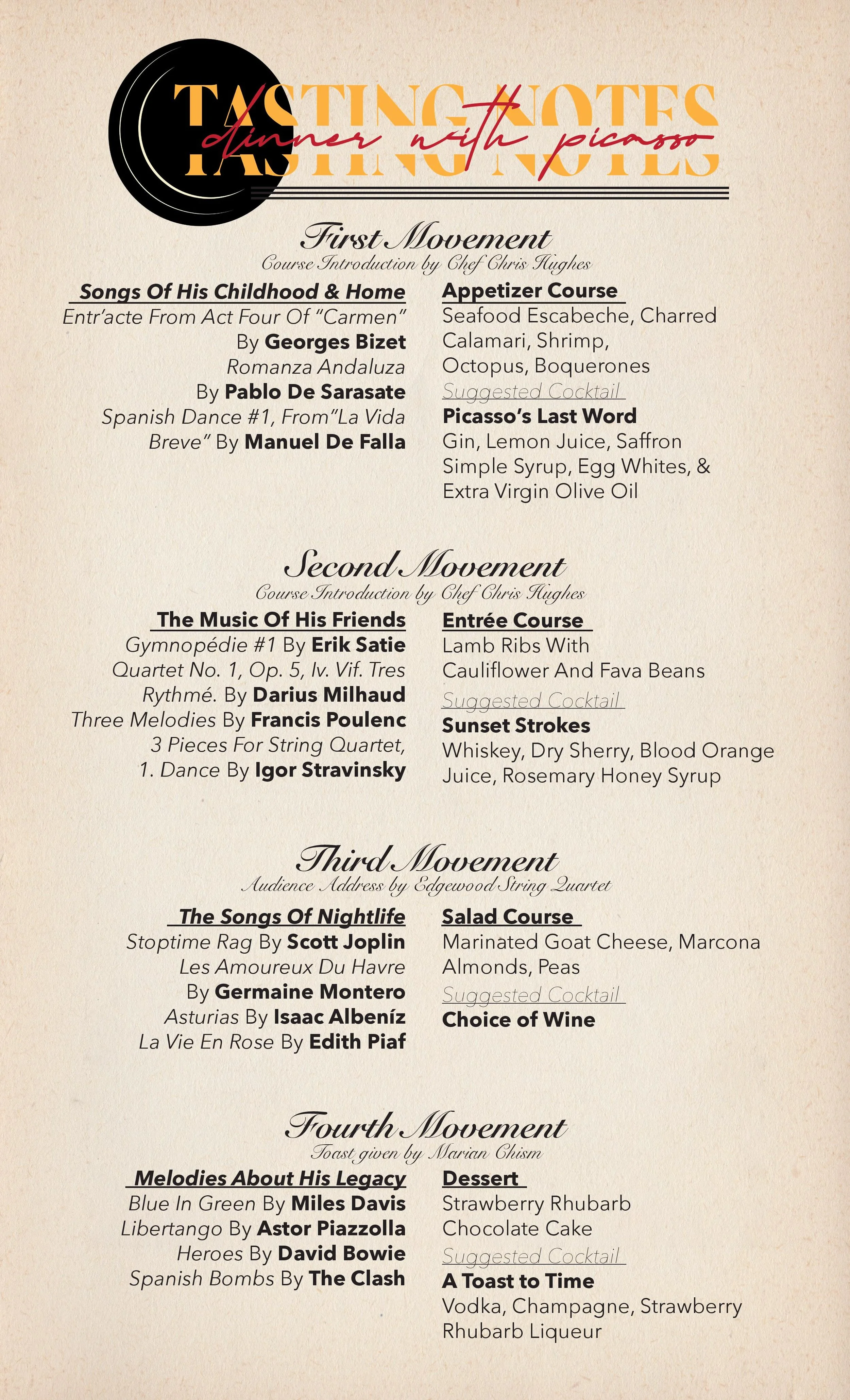 An immersive, sensory experience blending music, food, and drink to tell the story of Picasso.